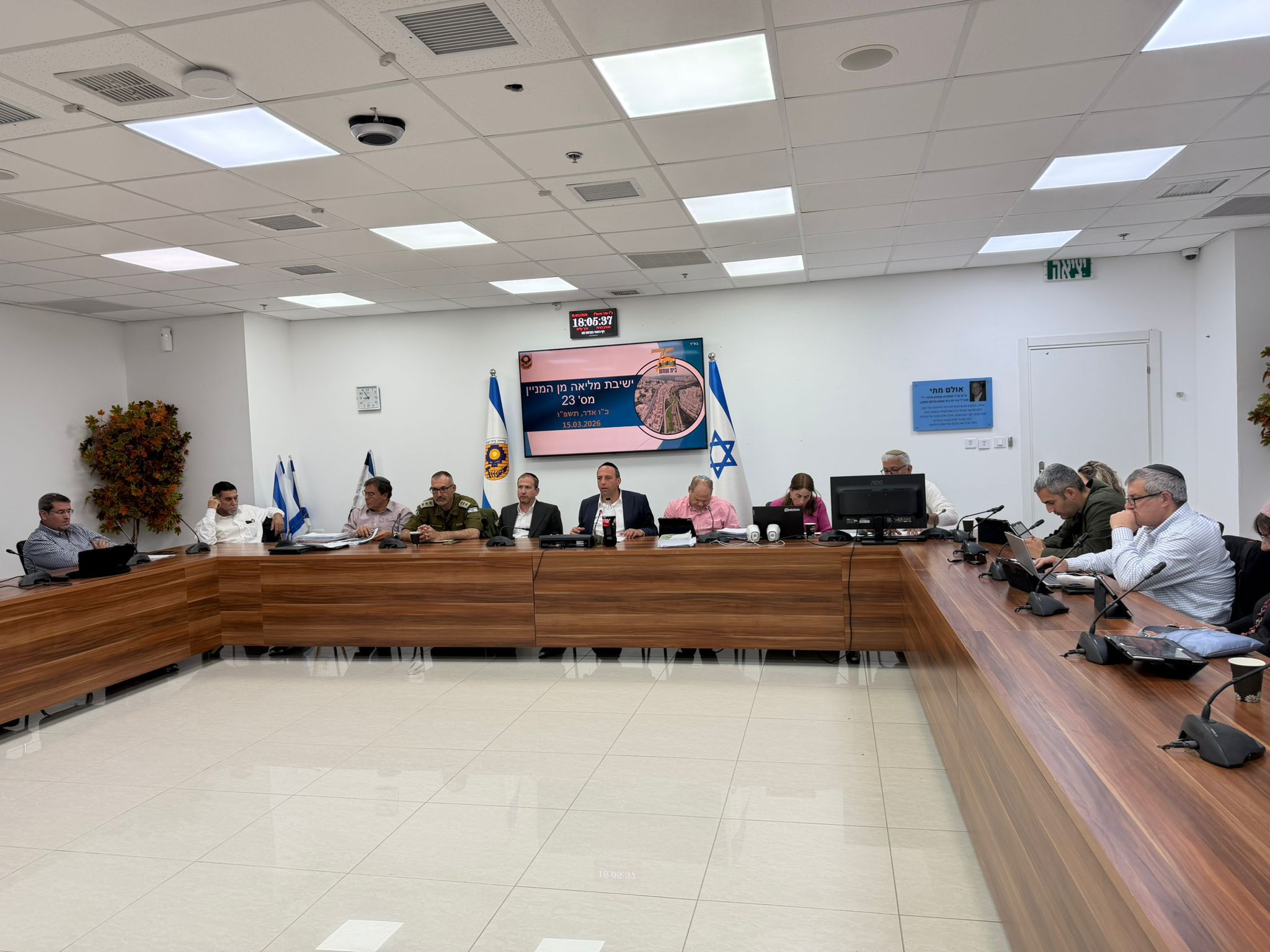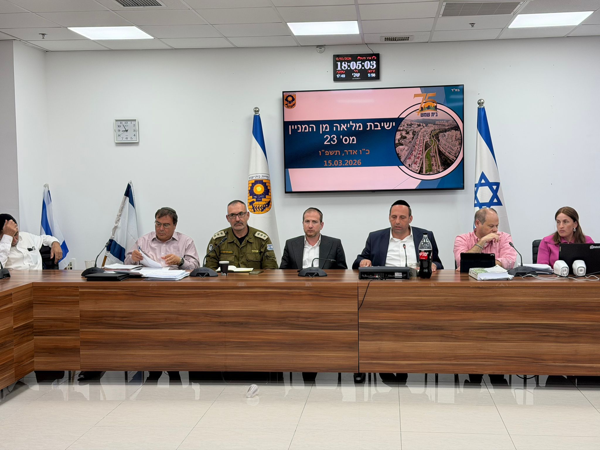 מליאת מועצת העיר בית שמש התכנסה לישיבתה ה-23, בצל האסון הקשה שפקד את העיר בתקופה האחרונה. בפתח הישיבה התייחס ראש העיר שמואל גרינברג לאירוע נפילת הטיל בעיר, הביע את השתתפותו בצערן של המשפחות והדגיש את החוסן שהפגינו תושבי העיר בימים שלאחר האירוע.